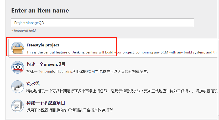 1.jenkins选择项目类型