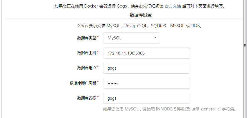 ./gogs web //启动2.配置gogs数据空间(mysql)