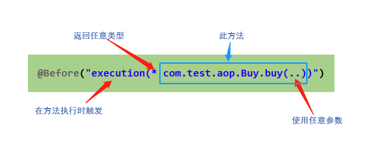 @Before("execution(* com.test.aop.Buy.buy(..))")